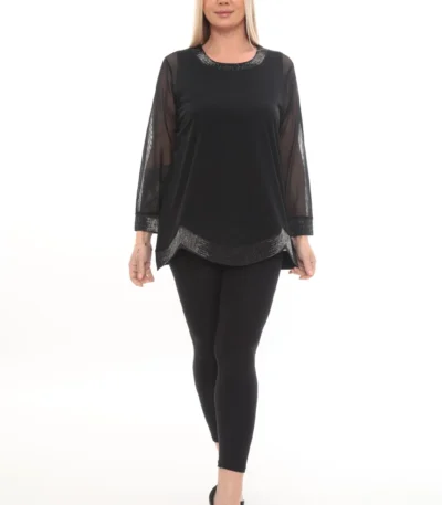 Čierna tunika s priesvitnými rukávmi a trblietavými lemami