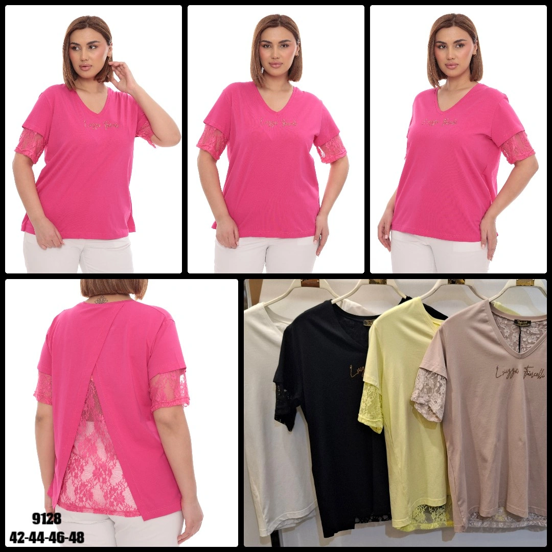 Dámske tričko s V-výstrihom a krátkym rukávom doplnené o jemnú čipku. Zadná časť s prestrihom a čipkovým detailom dodáva tričku štýlový a ženský vzhľad. Pohodlný strih a príjemný materiál vhodné na každodenné nosenie aj výraznejšie outfity.