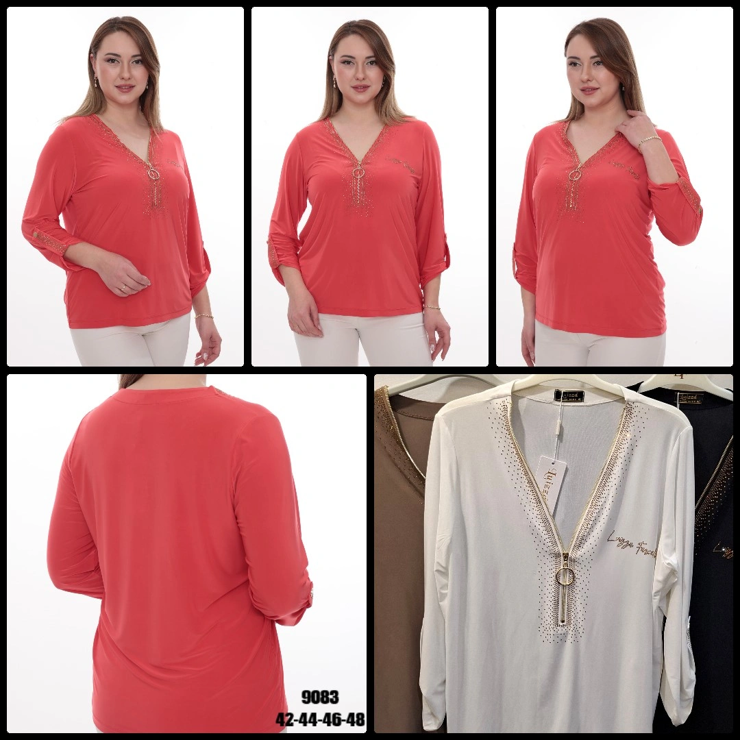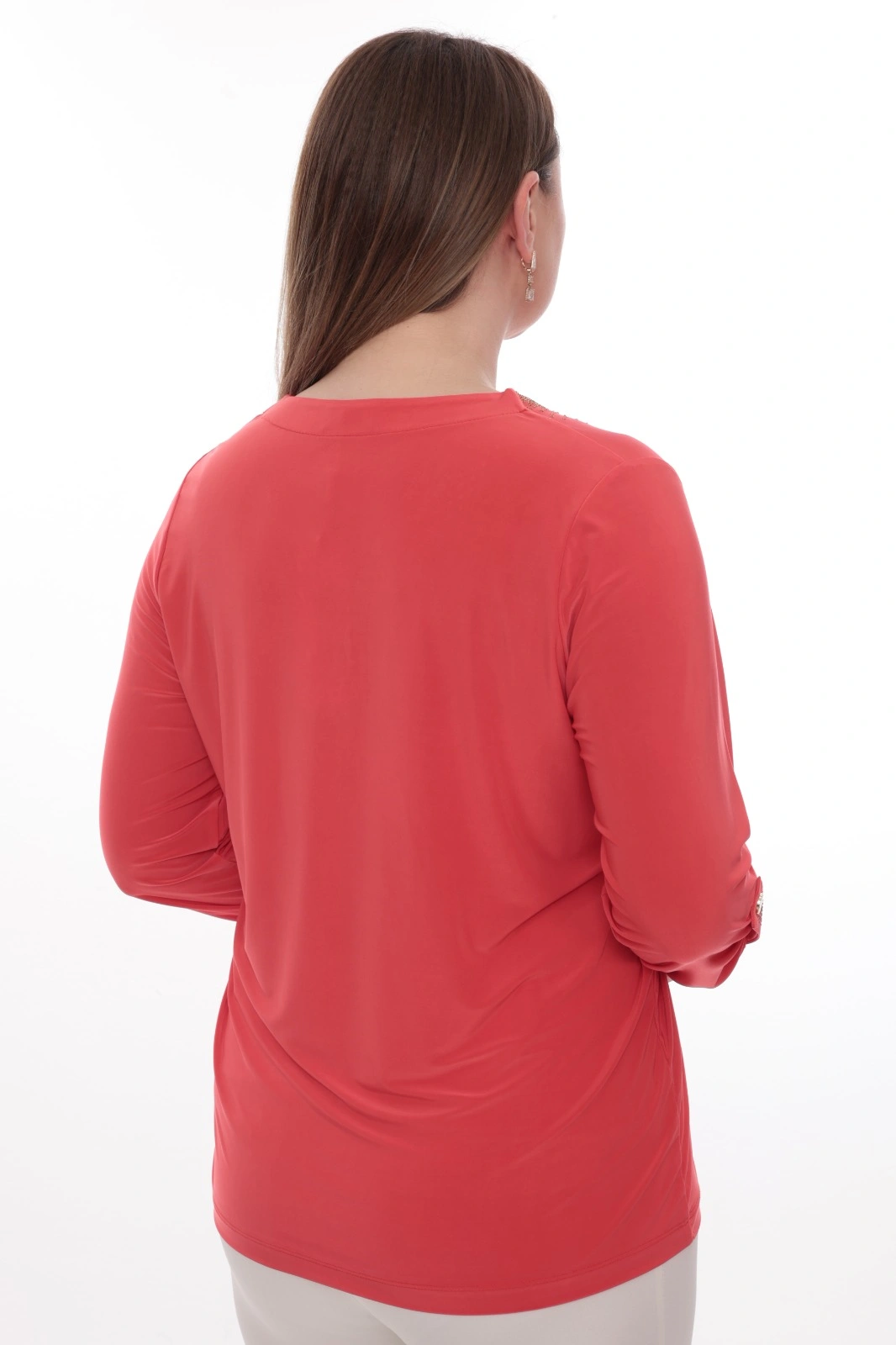 Dámske tričko s V-výstrihom a ozdobným lemovaním, doplnené o jemné detaily na rukávoch. Pohodlný strih a príjemný materiál zabezpečujú komfort počas nosenia. Vhodné na každodenné outfity aj elegantnejšie kombinácie.